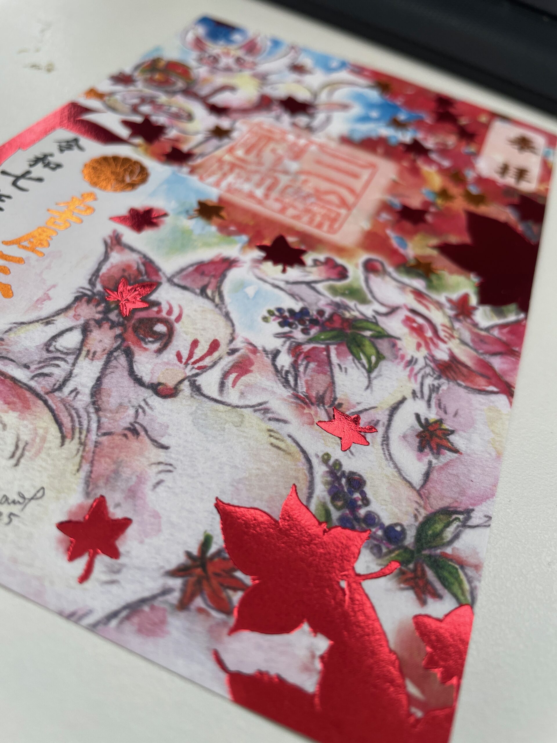 名古屋三輪神社さま2025年10月の御朱印2025年9月29日から配布される、名古屋三輪神社のスペシャル御朱印ですー。 SP:名古屋三輪神社 CL:村田金箔グループ IL:むらかみしの D・AD・CD:MARU-C 昌子衛 深まる秋の紅葉を2色の箔で表現しました♪ ぜひ名古屋三輪神社にお出かけくださいね。 https://miwajinnjya.com/ -